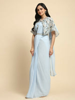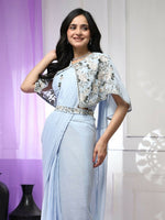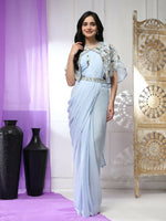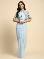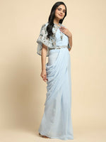 Blue Chiffon Solid Ready to wear Saree with stitched Blouse - Aayan - Free Size