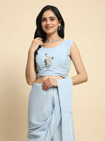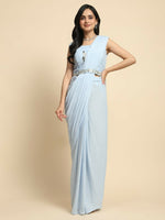 Blue Chiffon Solid Ready to wear Saree with stitched Blouse - Aayan