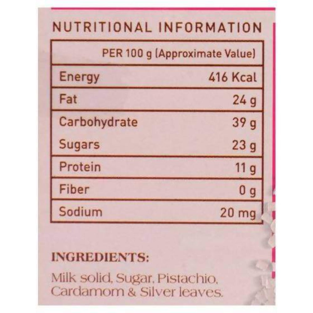 Haldiram's Pista Burfi Traditional Indian Burfi made with Pista, Elaichi Powder, Desi Ghee, Mawa, Suga. Ingredients: Milk Solid Silver Leaves Pist...