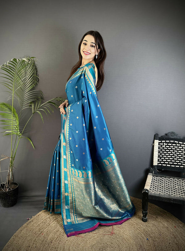 Joban Fashion Sky Blue Banarasi Soft Silk Woven Saree