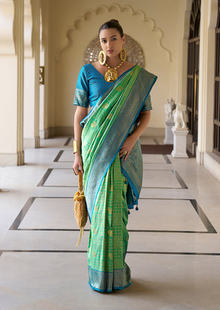 Monjolika Fashion Banarasi Silk Weaving Light Green Trendy Saree