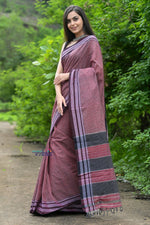 Very Much Indian Traditional Patteda Anchu Ilkal Handloom Saree-Cast Maroon Tone