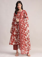 Aavyora Women Maroon Floral Printed Kurta with Printed Pants & Dupatta Set