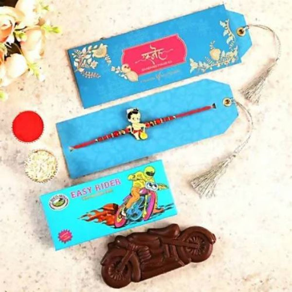 Bal Hanuman Rakhi & Choco Swiss Easy Rider Chocolate Combo: