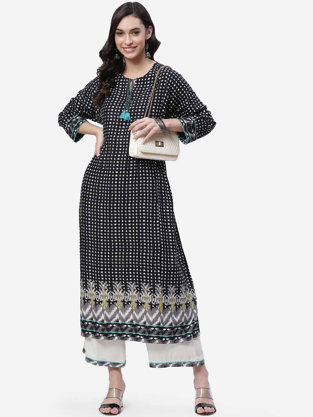 Black and white printed Kurta with Palazzos