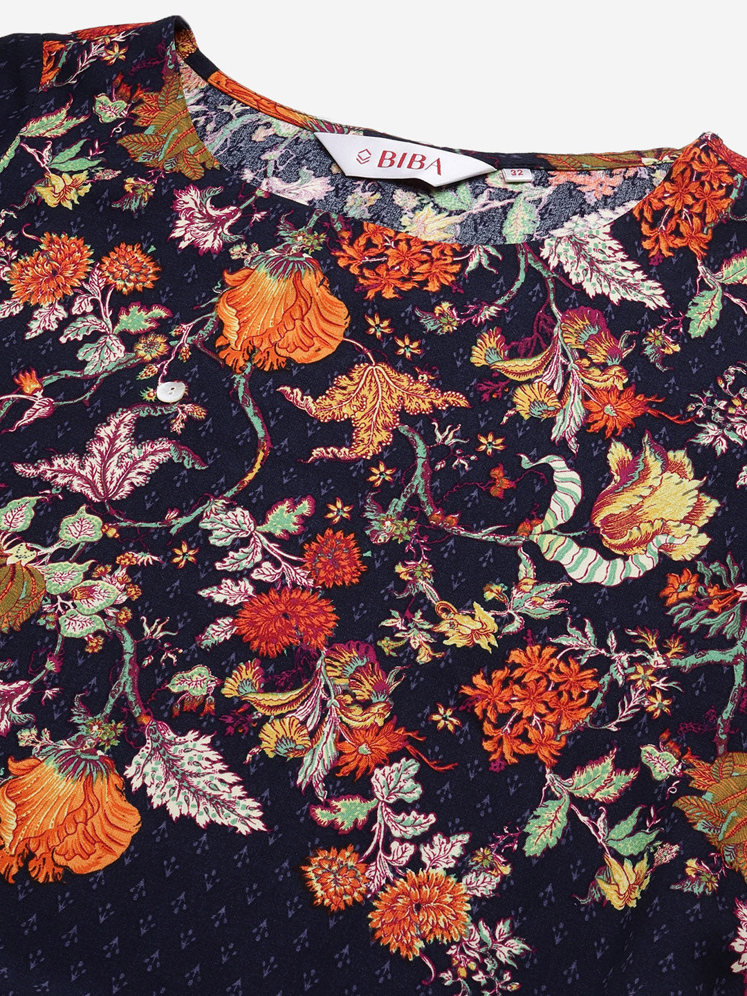Biba Women Navy Blue Printed Kurta with Palazzos Product Details Navy printed kurta with palazzosNavy printed straight knee length kurta, has a ...