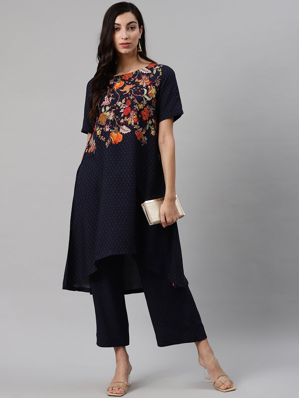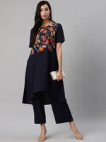 Navy printed kurta with palazzos