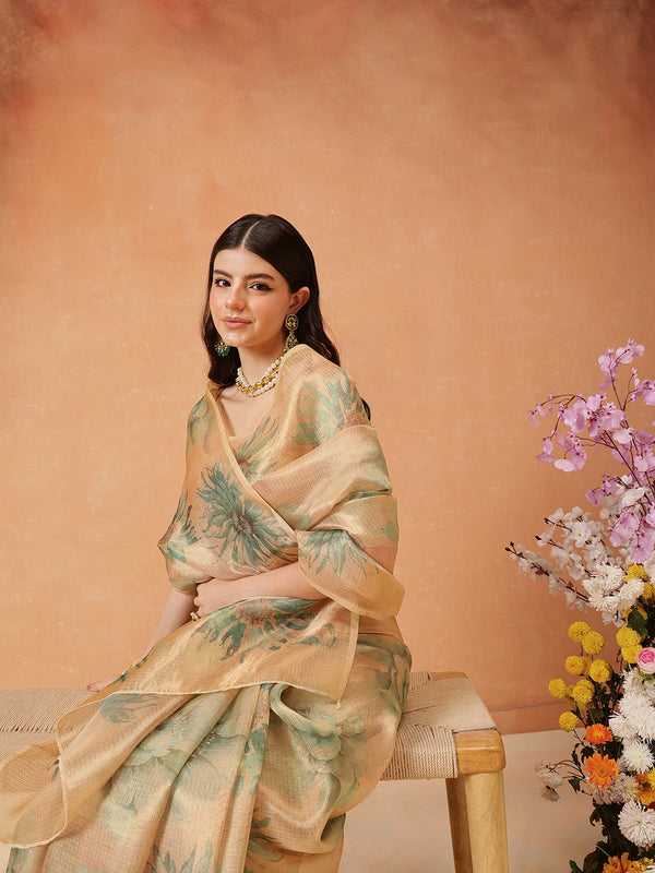 Hiral Fashion Beige Bollywood Cotton Tissue Floral Digital Printed Saree