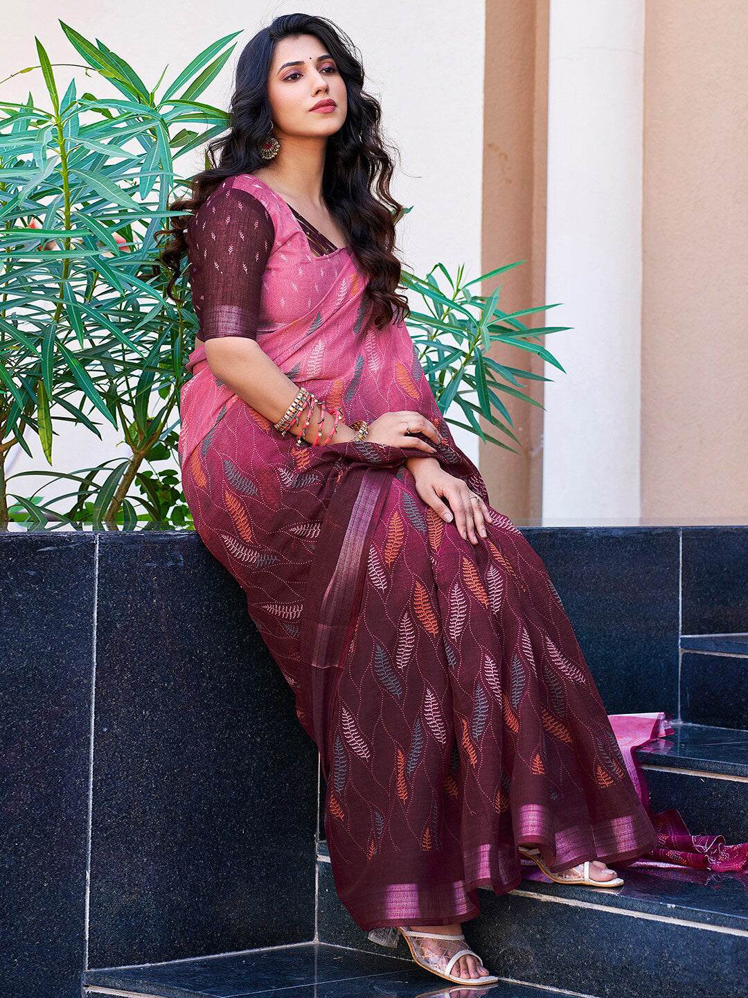 Kalini Floral Printed Zari Sarees Product Details Design Details Pink and Maroon saree Floral printed saree with zari border  Has zari detail...