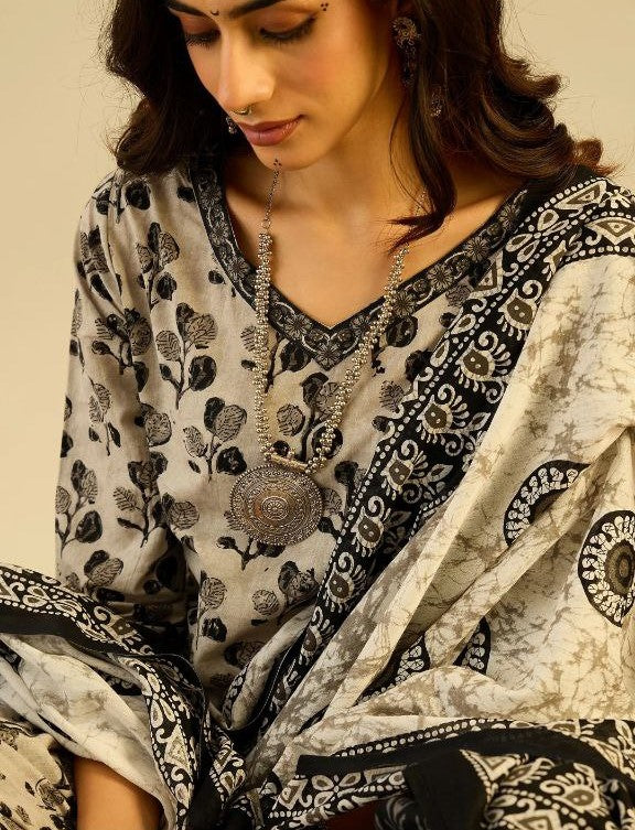 Yufta Cotton Cream Anarkali Kurta Dupatta Set - Distacart Yufta Cotton Cream Anarkali Kurta Dupatta Set
