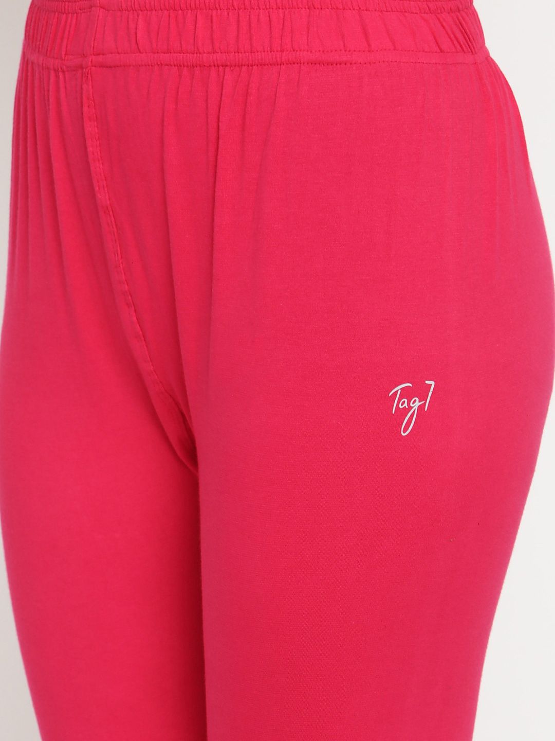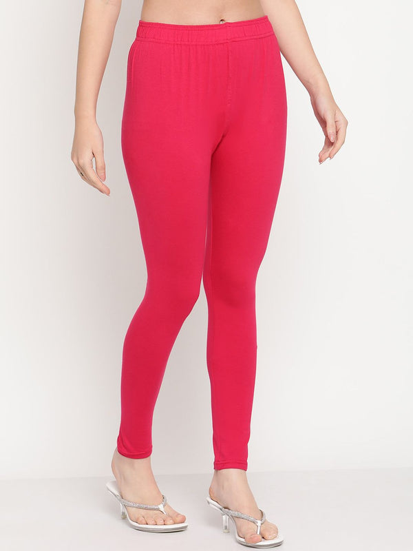 Pink solid ankle-length leggings has an elasticated waistband and slip-on closure