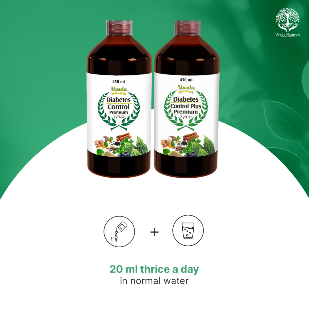 Uveda Naturals Diabetes Management Combo 1 Month Set Combo Contains: 1. Uveda Naturals Diabetes Control Premium Syrup - 450 ml - 4 Quantity 2. Uve...