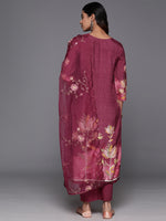 Varanga Women Pure Muslin Maroon Floral Printed Kurta Paired With Tonal Bottom And Organza Dupatta