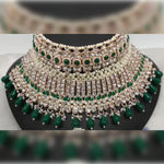 Jewel City Exquisite Crystal and Pearl Bridal Choker Set with Matching Earrings and Tikka Color: Green Material: Alloy Adorn yourself in regal sp...
