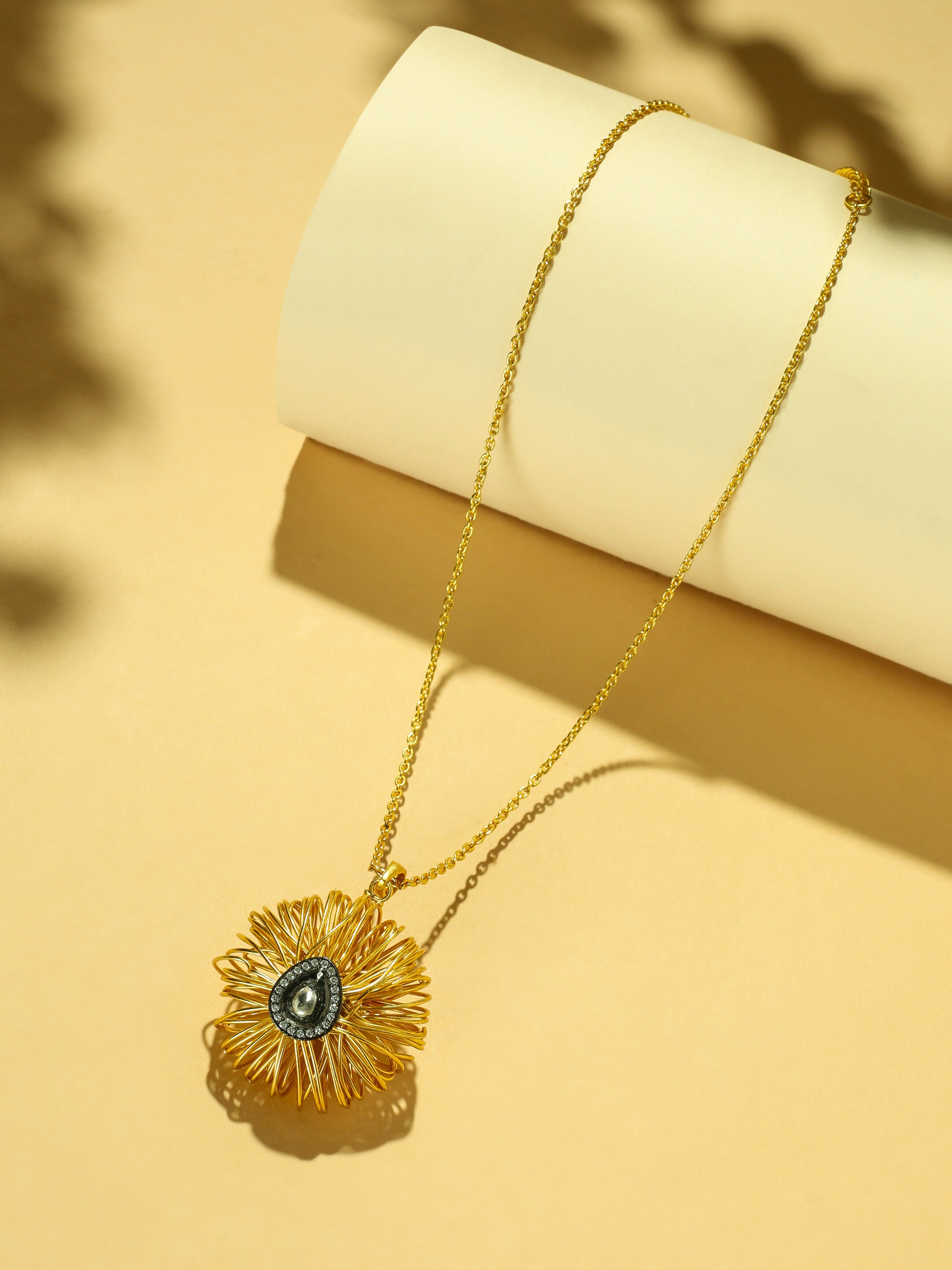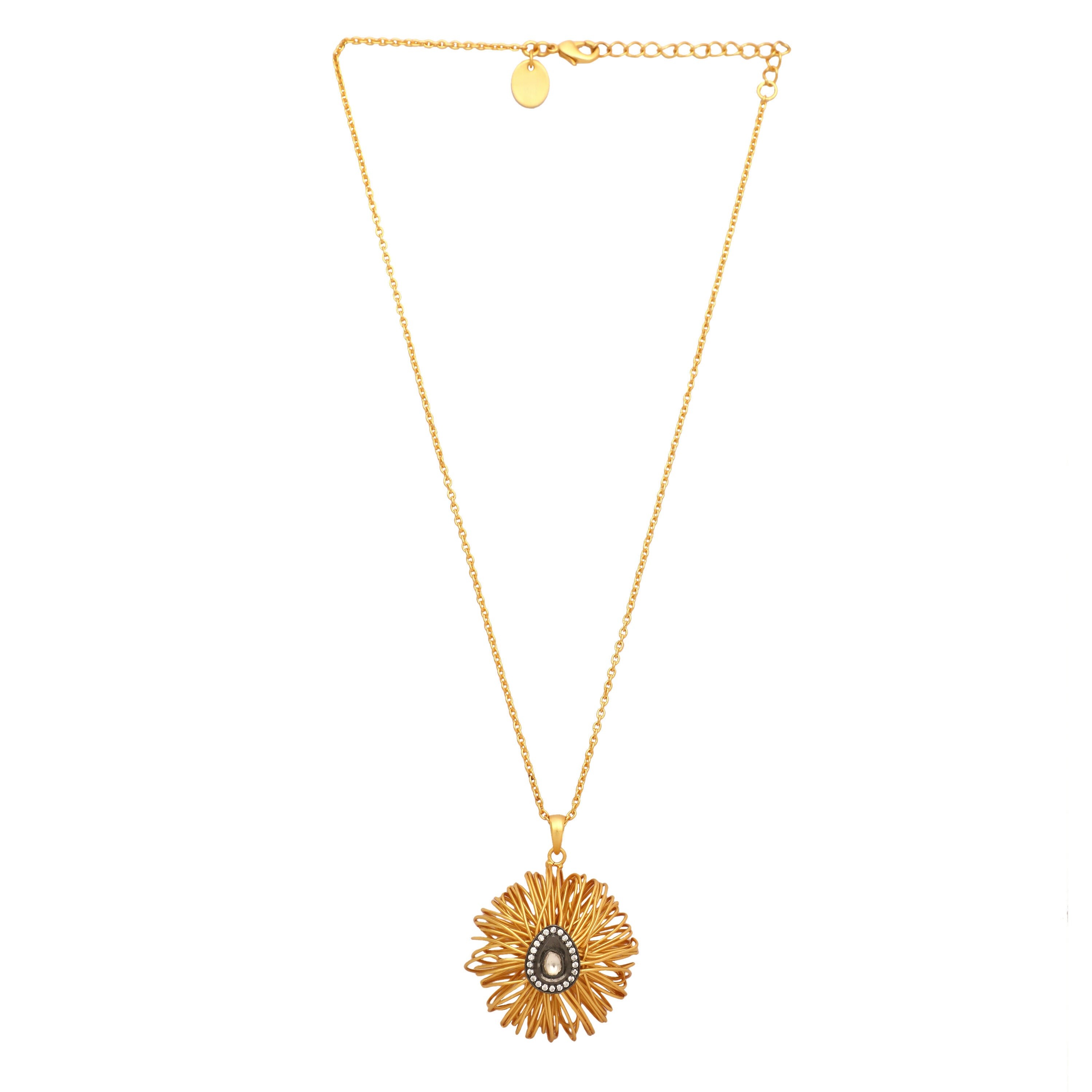 Nuyug 18k Gold-Plated Crystal Studded Minimal Chain Pendant NecklaceAbout the product:18k Gold-toned crystal embellished pendant, gold-plated, has ...
