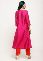 trueBrowns Pink Angrakha SetDescription Silk blend relaxed fit angrakha kurta with contrast silk blend pants. Angrakha has 2 side pockets, hook and...