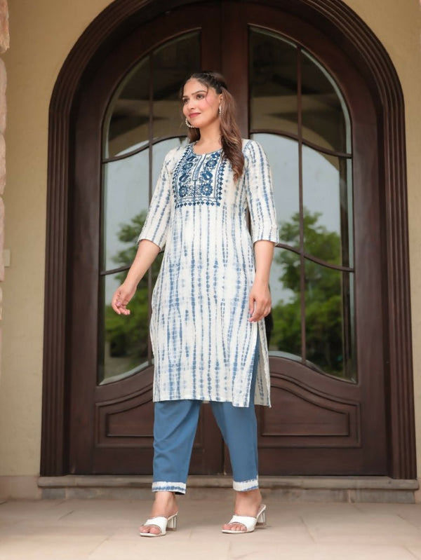 Aramya Straight Soft Cotton Tie-Dye Print Women's Kurta - BlueElevate your style with our uniquely designed kurta, perfect for daily wear or casual...