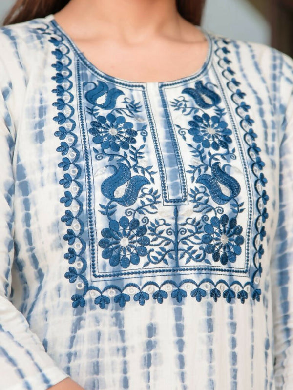 Aramya Straight Soft Cotton Tie-Dye Print Women's Kurta - Blue - M