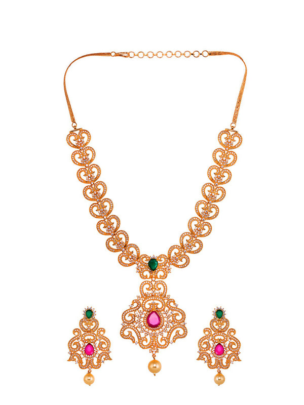 Gold-plated necklace, has pink And Green Stone beaded detail, secured with a lobster closure