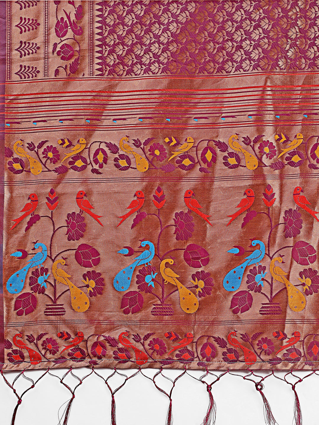 Astita Vibrant Copper & Magenta Banarasi Silk Saree with Colorful Pallu - Perfect Blend of Tradition and Festive Elegance - Distacart