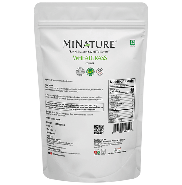 Minature Wheat Grass Organic PowderMinature Wheat Grass Organic Powder is the freshly sprouted first leaves of the common wheat plant, used as a fo...