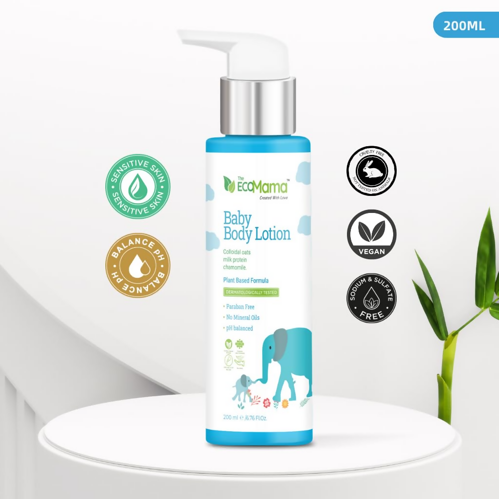 The Eco Mama Moisturizing Baby Body Lotion with Colloidal Oats, Milk Protein & Chamomile Oil - 200 ml