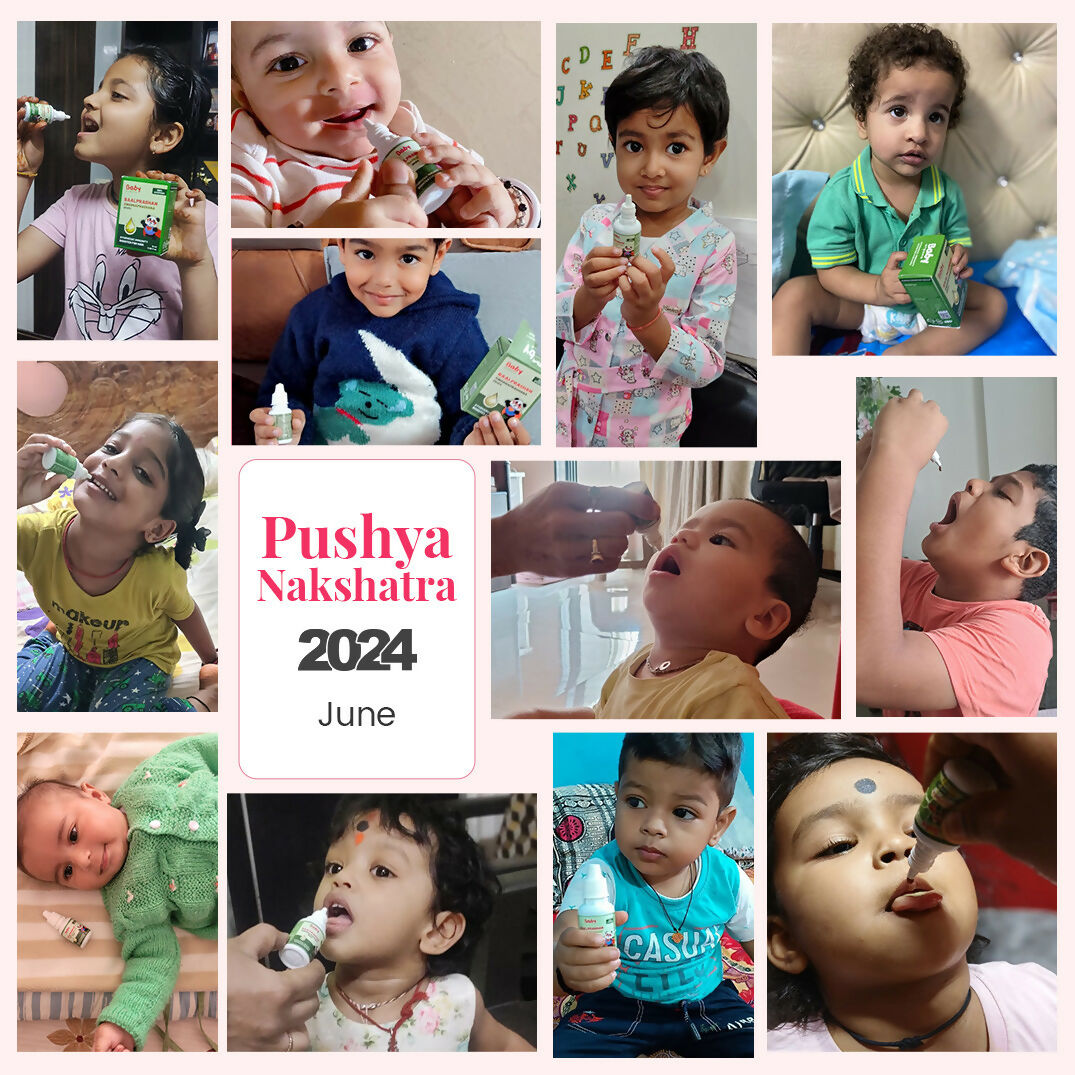 • BaalPrashan drops can be given daily or pushyanakhstra. It should be given on an empty stomach in the morning. Avoid giving food or other liquid for half an hour.