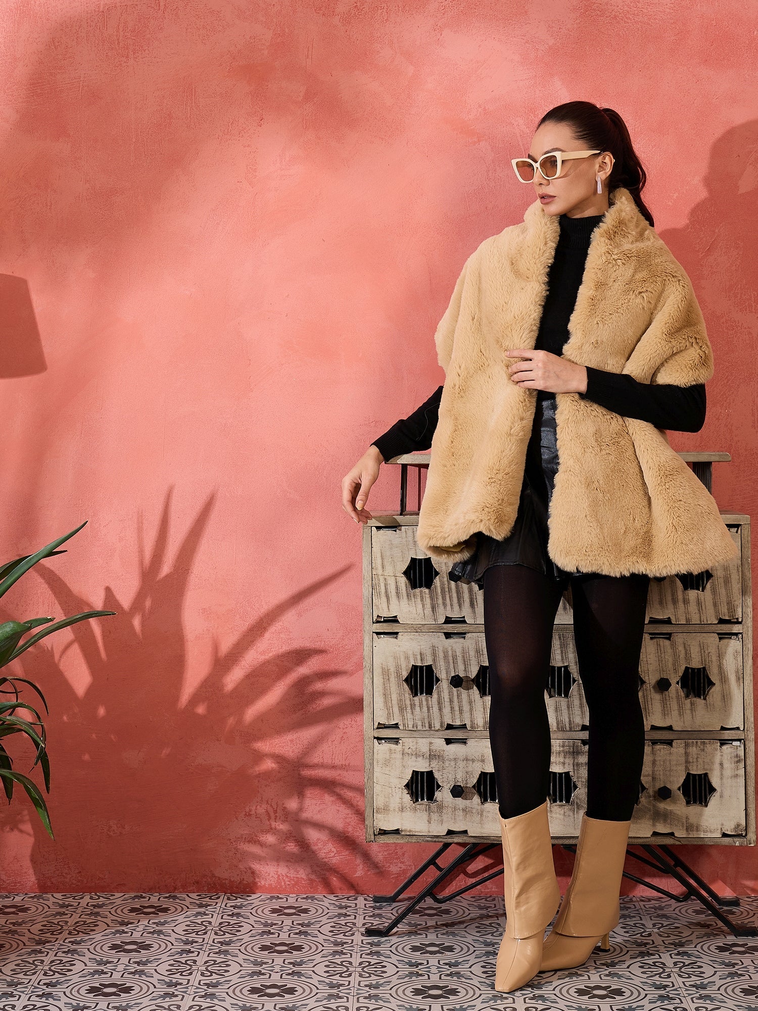 InWeave Beige Rabit Faux Fur Cape - Distacart