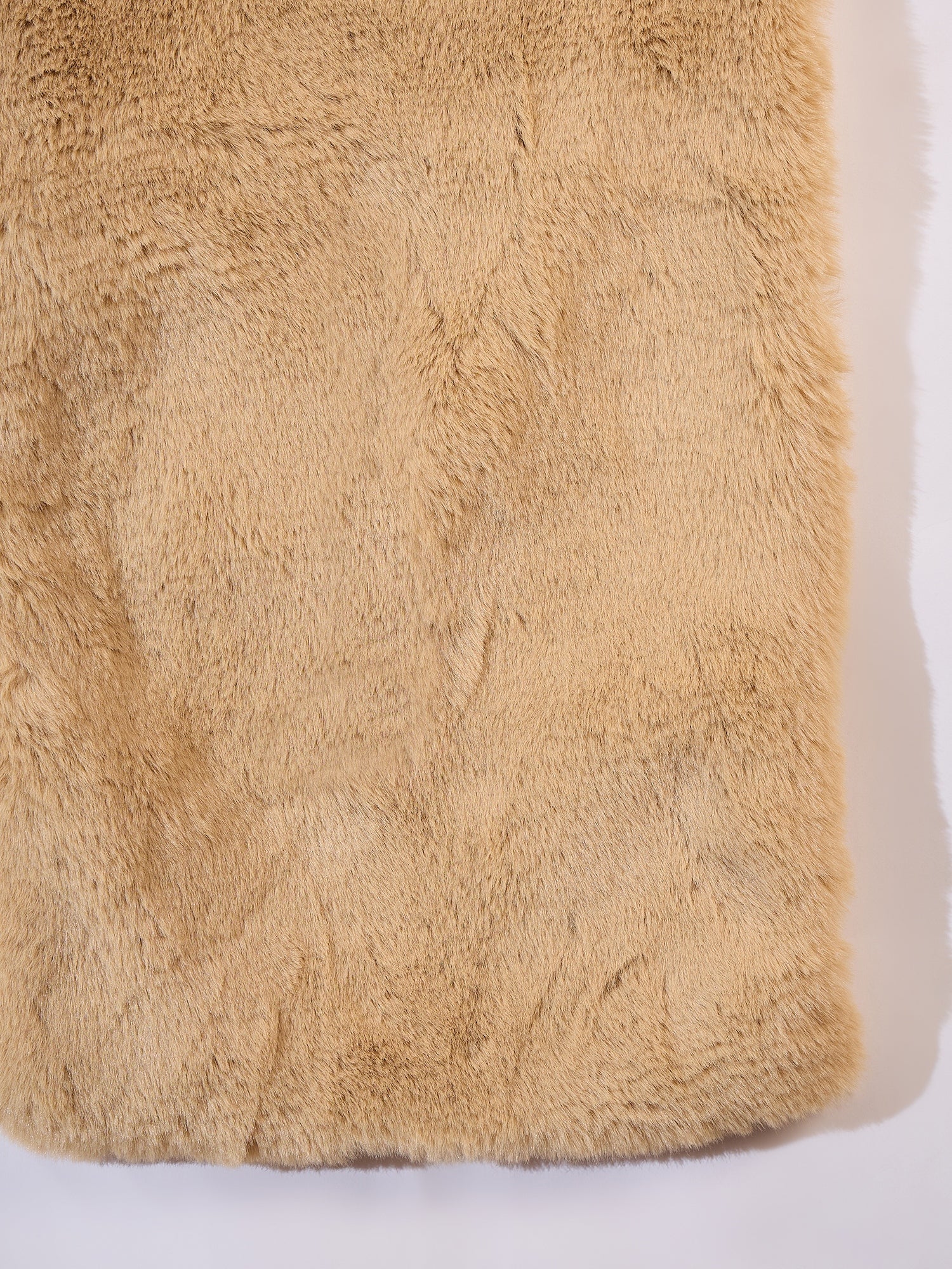 A chic beige cape made from soft and luxurious rabbit fur, combining warmth with understated elegance. Perfect for enhancing both casual and formal winter looks.