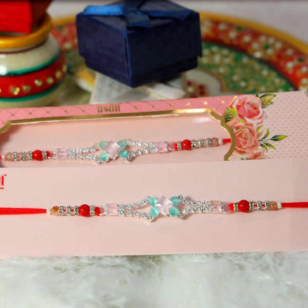 Indianvibez Ad Green / Pink Stock Stone Fancy Rakhi - Pack of 1