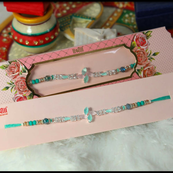 Indianvibez Ad Green / Pink Stone Fancy Rakhi - Pack of 1