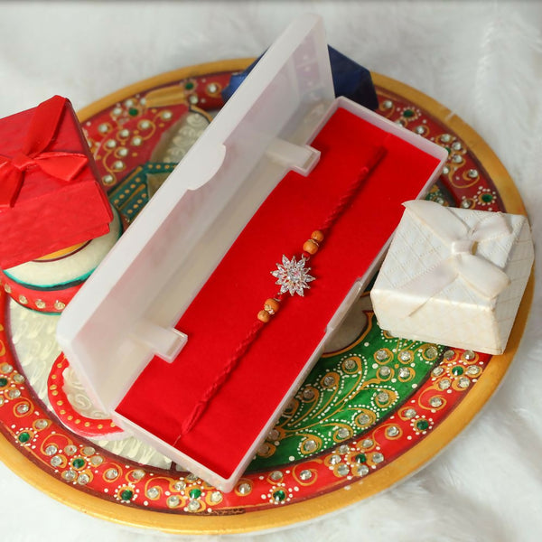 AD Rakhis, also known as American Diamond Rakhis, are adorned with cubic zirconia stones,providing a brilliant sparkle. These Rakhis have become one of the most popular choices in North Indiadue to their unmatched beauty and affordability.
