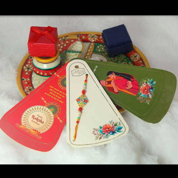 Immerse yourself in the richness of our traditional Kundan Rakhi designs. Featuring classic motifs and rich color palettes, these Rakhis pay homage to centuries-old traditions while adding a touch of regal splendor to your Raksha Bandhan celebrations.