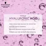 • Hydrating Hyaluronic Acid maintains optimum moisture levels for hair by providing intense hydration, thus restoring hair structure