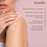 • Use after a bath, steam, or spa to soften, nourish, and leave the skin with a satin sheen.