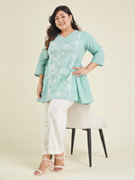 Janasya Bright Cotton Embroidered A-Line Tunic - 3XL