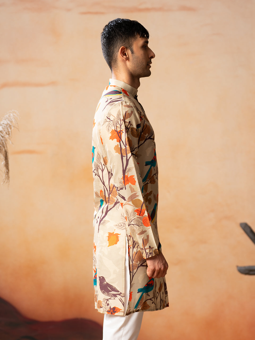 Serenity Bird Themed Print Cotton Kurta by Hilo Design - Distacart