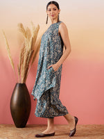 InWeave Slate Grey Paisley Round Neck Kurta Short Palazzo Set - S