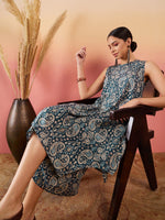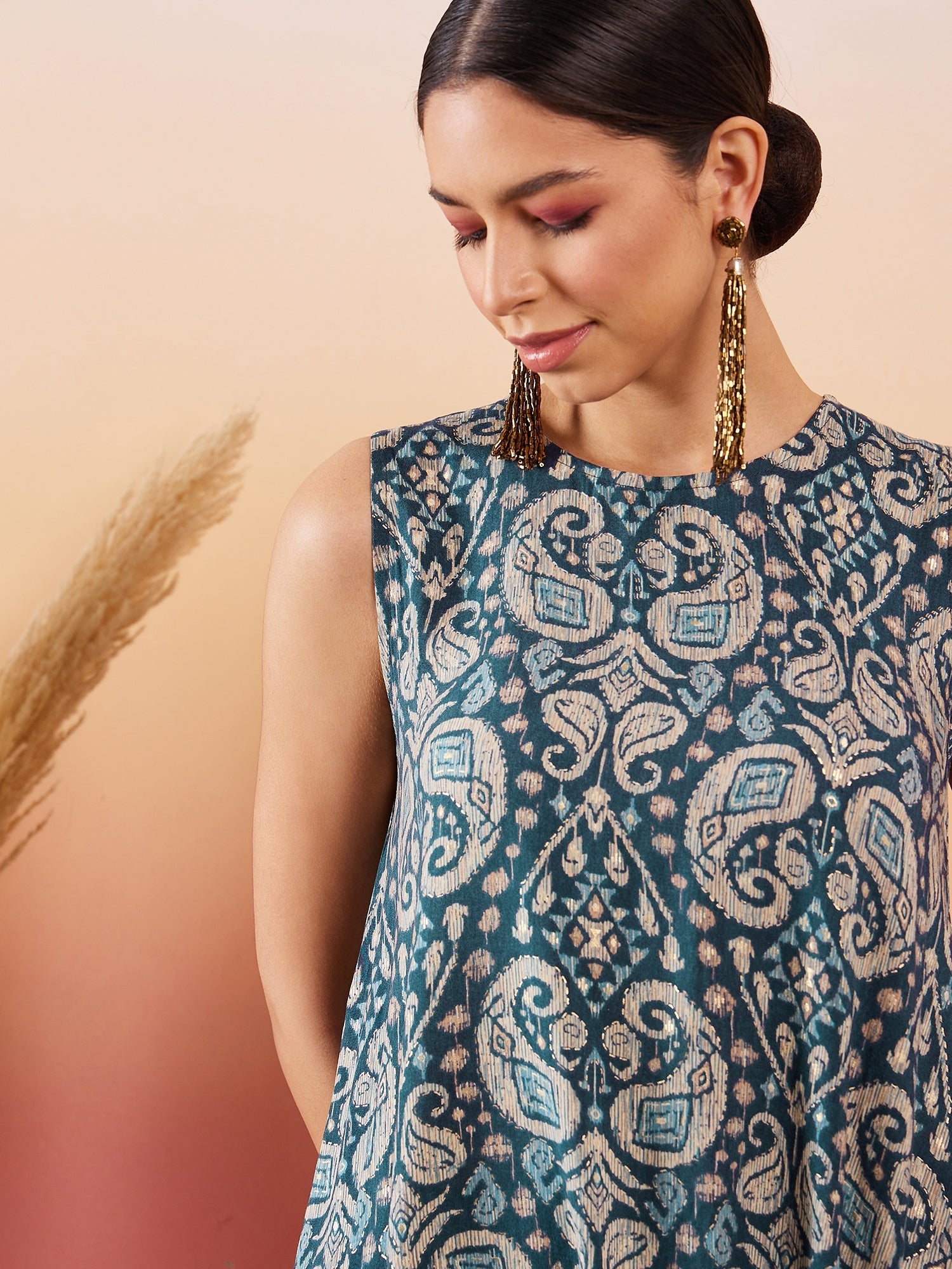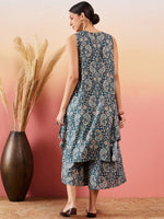 InWeave Slate Grey Paisley Round Neck Kurta Short Palazzo Set