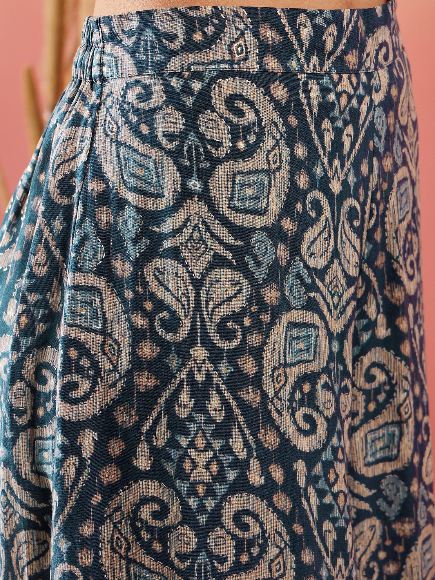 InWeave Slate Grey Paisley Round Neck Kurta Short Palazzo Set - Distacart