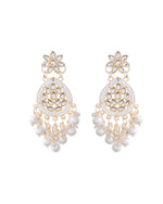 Jewels Nest Pearl-Embellished Kundan Teardrop Earrings with Floral Detailing