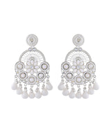 Jewels Nest Silver-Plated White Stone Chandelier Earrings with Floral and Beaded Detailing