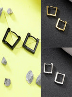 NVR Men's Set of 3 Multicolor Rhodium-Plated Geometric Shape Stainless Steel Hoop Earrings - Distacart