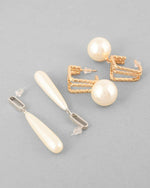 VOJ Set Of 2 Korean Drop Earrings - Gold-Polished and Silver Plated With White Pearl