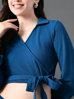 Myshka Women's Blue Co-Ord Set Pack Contains: 1 Top & 1 Trouser Top Length of Kurta: 18 Top Shape: Relaxed Top Fabric: Polyester Top Col...