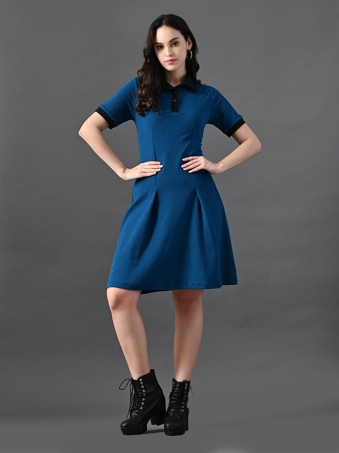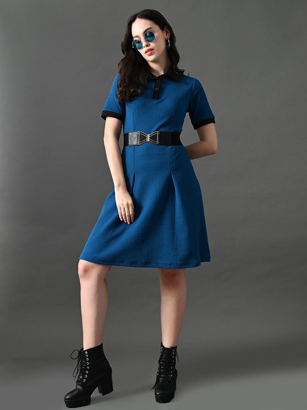Myshka Women's Blue Collared Dress Pack Contains: 1 DRESS Top Length of Kurta: 38 Top Shape: Relaxed Top Fabric: POLYSTER Top Color: Blue T...