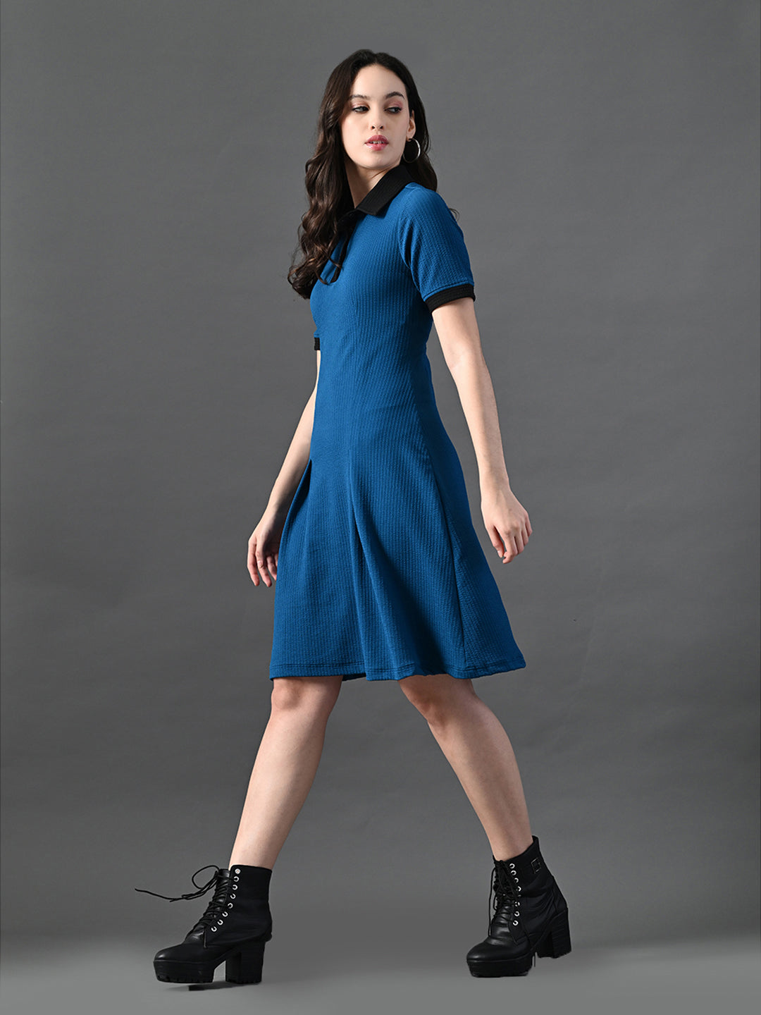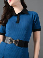 Myshka Women's Blue Collared Dress - Distacart