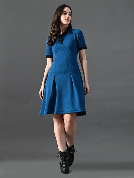Myshka Women's Blue Collared Dress