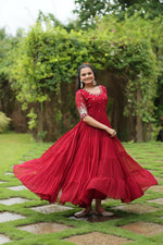 Vastranavya Premium Designer Faux Blooming with Embroidery Zari Sequins work Gown - Red