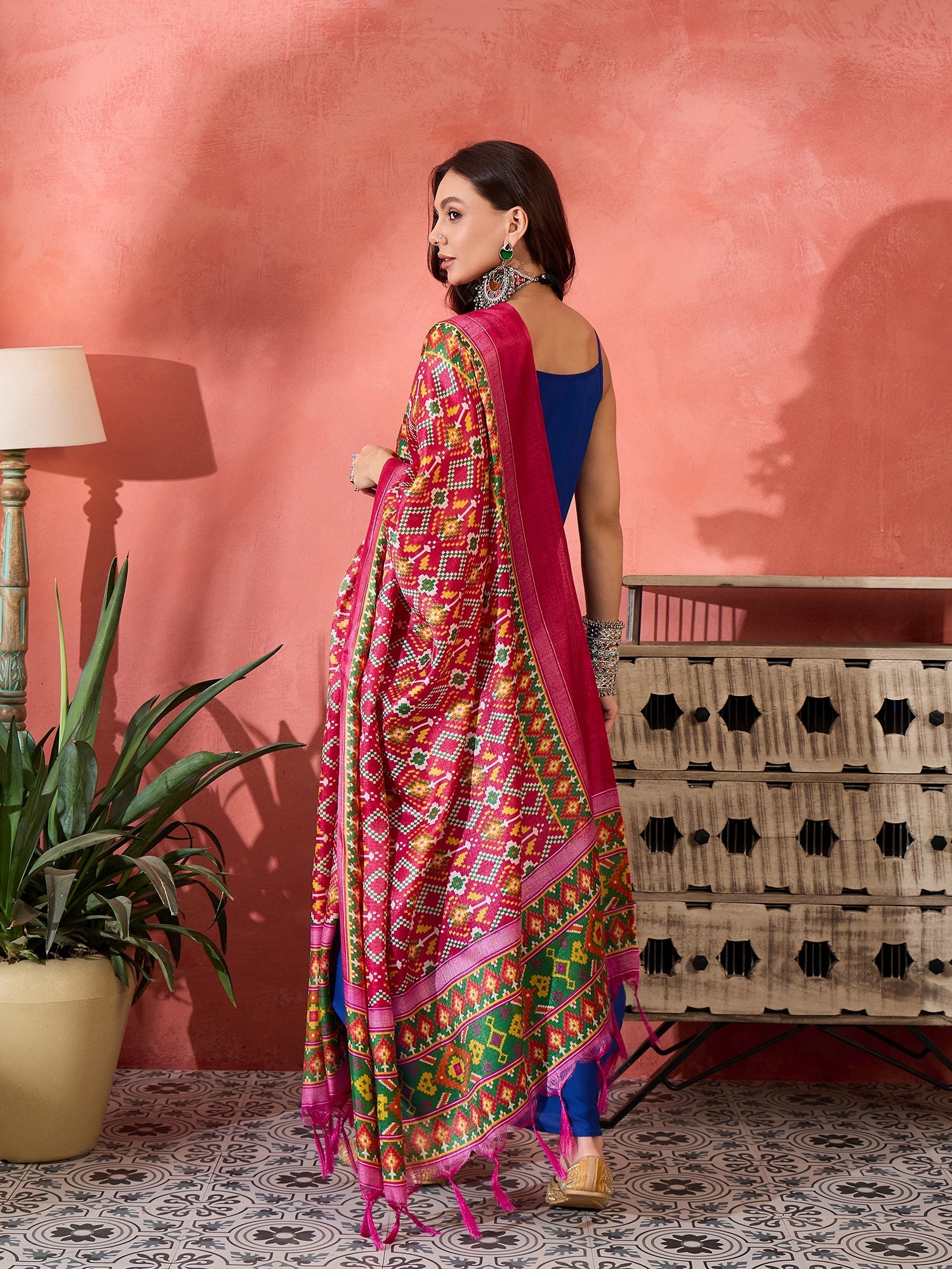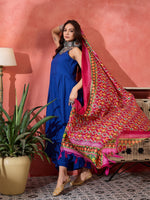 InWeave Ink Blue Strappy Kurta Set Pink Patola Dupatta - Distacart